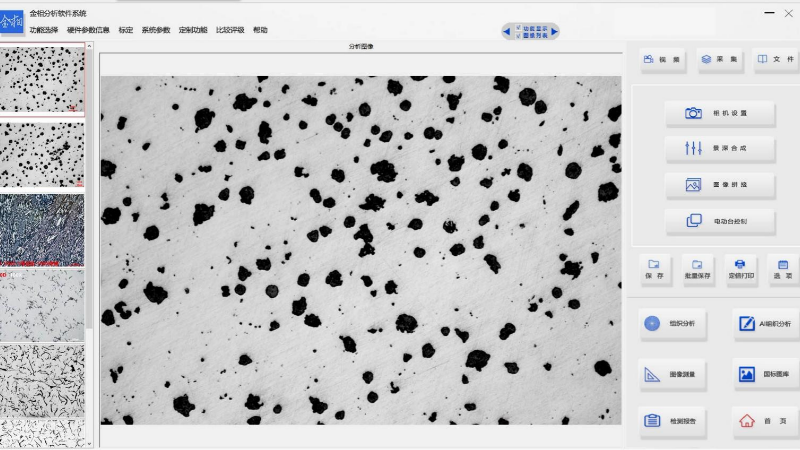FMIA2025版金相圖像分析(xī)軟件做(zuò)了全新的改版升級,係統涵蓋國內外大量的金相(xiàng)檢測標準,集定量分析、定性分析於一身,新增了景深(shēn)合成功能、圖像視(shì)野拚接功能,界麵簡潔,可以連續拍(pāi)攝多視野圖(tú)像,集中進行圖像的(de)組織分析,操作更方便(biàn),省去之前軟件各種繁瑣步驟,讓檢測更快捷高效。