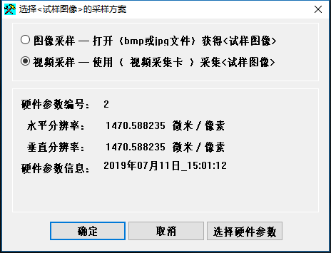 l 點擊“裝入圖像”,在(zài)彈出窗(chuāng)口後,選擇視頻采樣選(xuǎn)項(xiàng)。然後點擊“確定(dìng)”。出現圖像采集窗口采樣